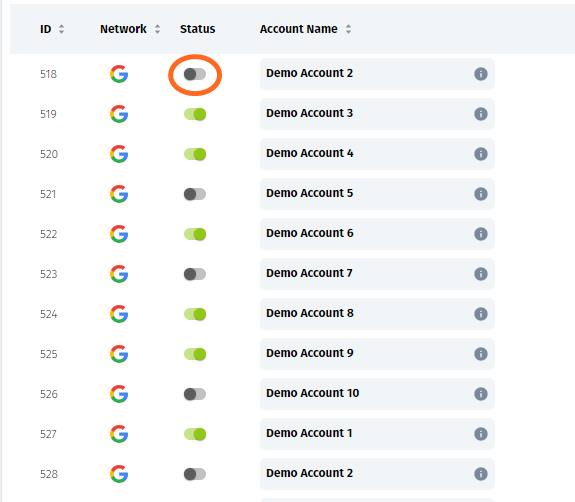 For you to see your ad accounts in your dashboard, you should turn on your ad accounts by switching the toggle displayed in the picture below.