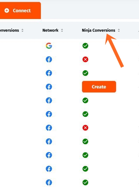 Now, in the case of Facebook, the ninja conversions verify pixel connection in your accounts. If pixels are absent, you can click the “create” button to generate your own unique pixel easily.