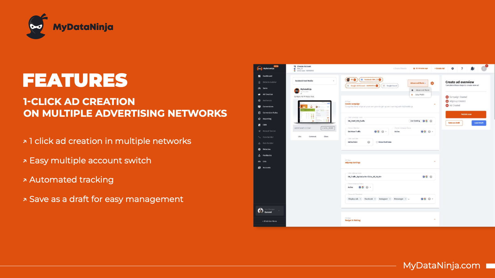 Why MyDataNinja? Because we know that dealing with all those platforms at the same time is a headache! We created a tool to make running your Ads easy, fast, and ready to grow with you.