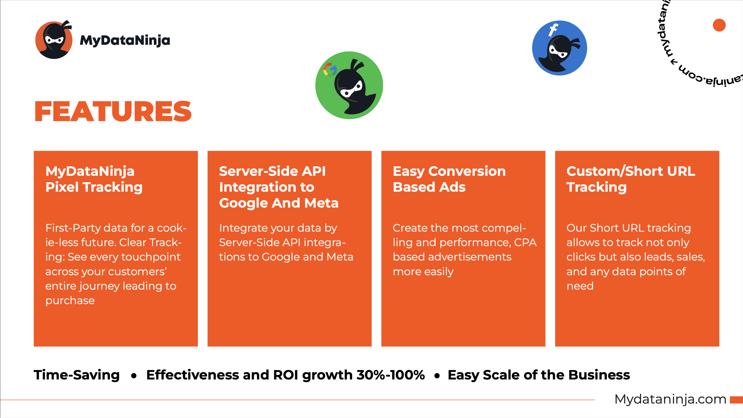 MyDataNinja gives you different tracking options, such as UTMs and Custom URLs. we track every step of the user with ease. MyDataNinja also has its own tracking parameter named NJID.